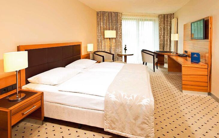 Das ****MARITIM Kurhaushotel Bad Homburg liegt im Herzen der Stadt, direkt am Kurpark. Es bietet zwei Restaurants, Bar, Wellnessbereich mit Schwimmbad und Sauna (gegen Gebühr) sowie stilvolle Zimmer mit Bad oder Du/WC, Föhn, TV, Telefon, Safe, Minibar und WLAN. EZ sind DZ zur Alleinnutzung.
