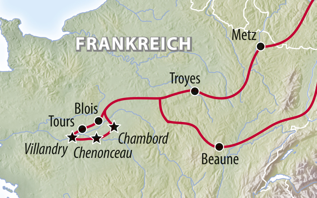8 Tage Busreise Beaune – Tours – Loire-Schlösser – Troyes – Metz