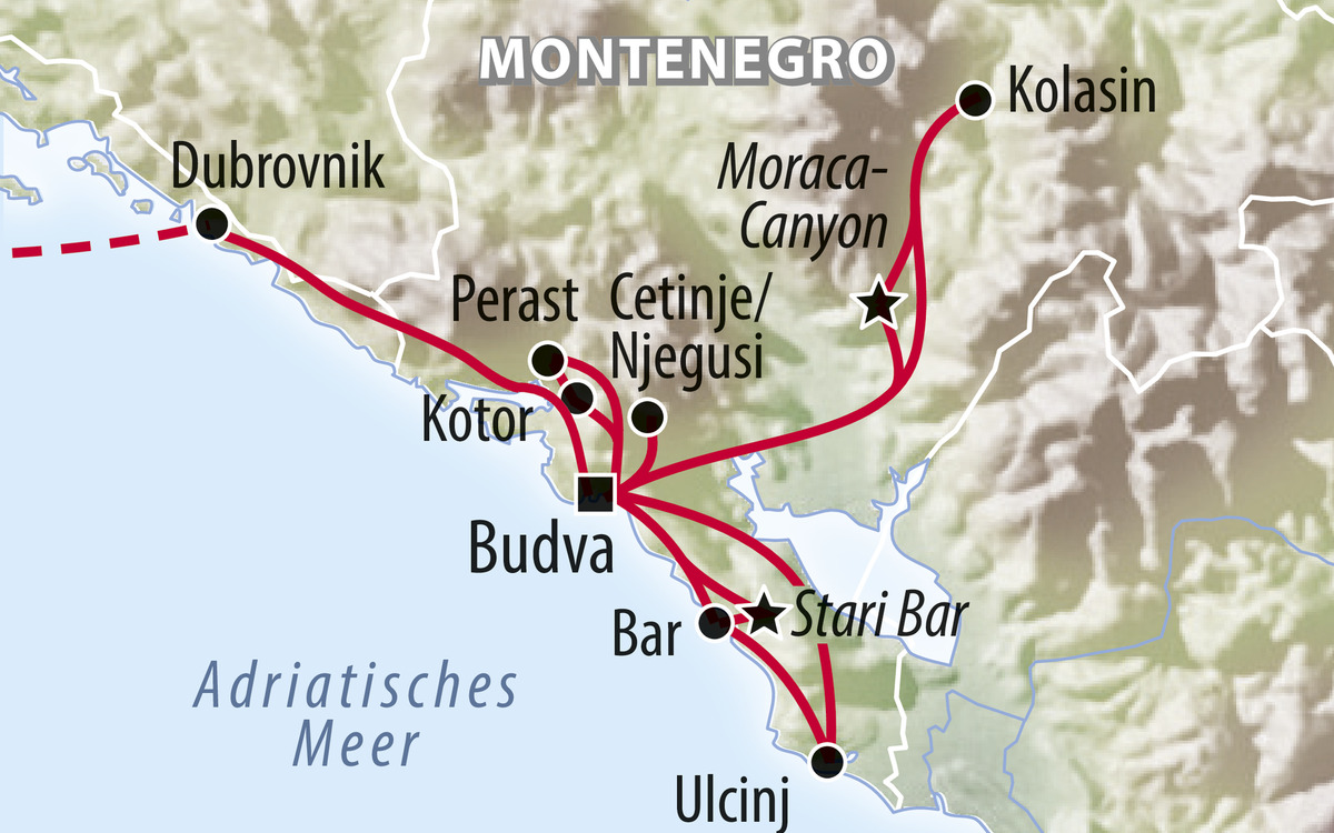 Montenegro – das kleine Land an der Adria begeistert mit kulturellem Reichtum, spektakulären Landschaften und mediterranem Flair. Erleben Sie die fjordähnliche Bucht von Kotor mit den UNESCO-Städten Perast, Risan und Kotor, das historische Hinterland mit Budva, Cetinje und Njeguši sowie den Süden mit Bar und Ulcinj. Eine Reise voller Kontraste – zwischen Küste, Bergen und Tradition.