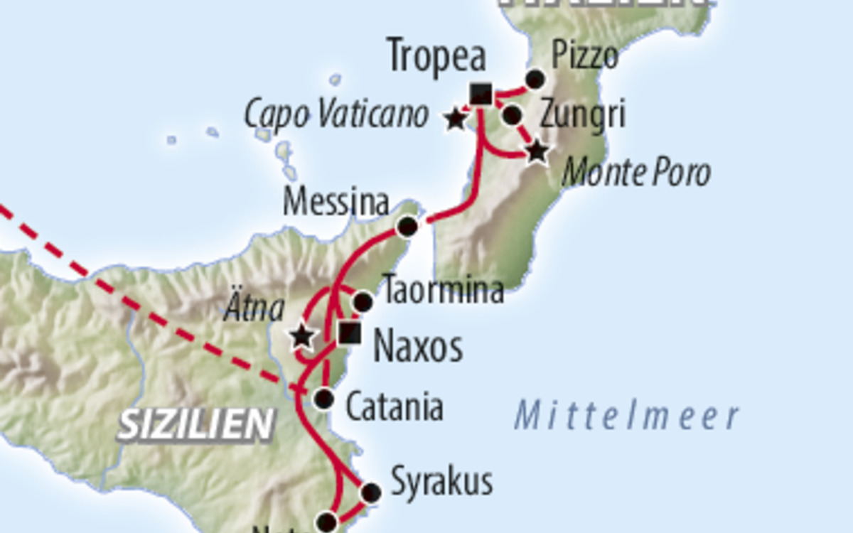 8 Tage Flugreise Tropea – Capo Vaticano – Syrakus –  Taomina