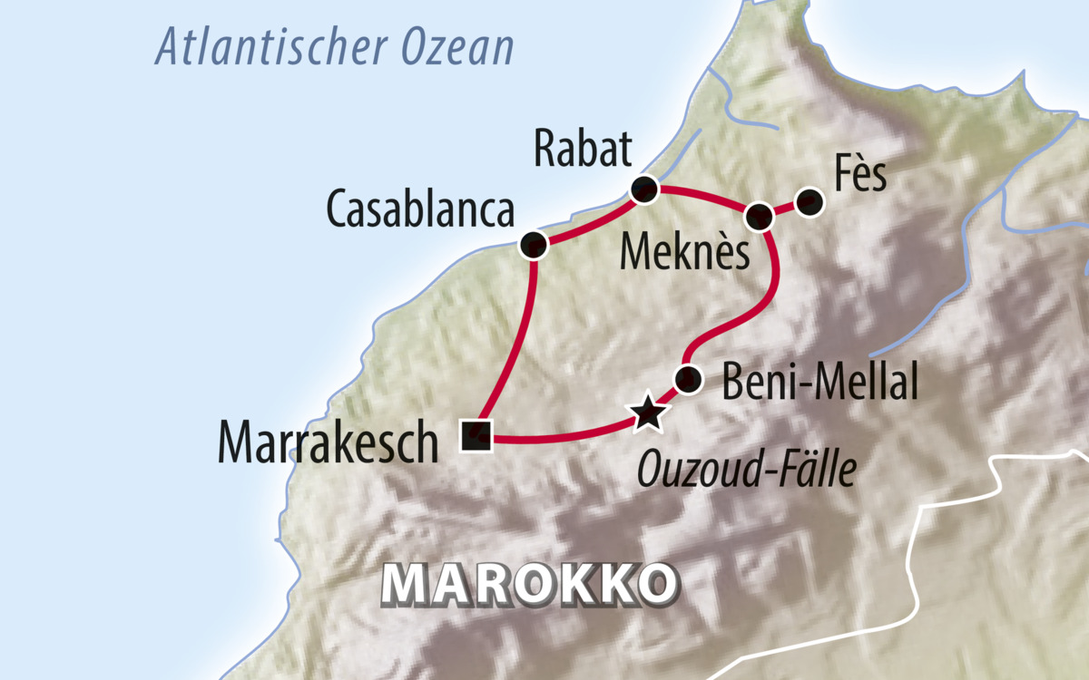 8 Tage Flugreise Casablanca – Rabat – Meknès – Fès – Berberstadt Beni Mellal – Marrakesch