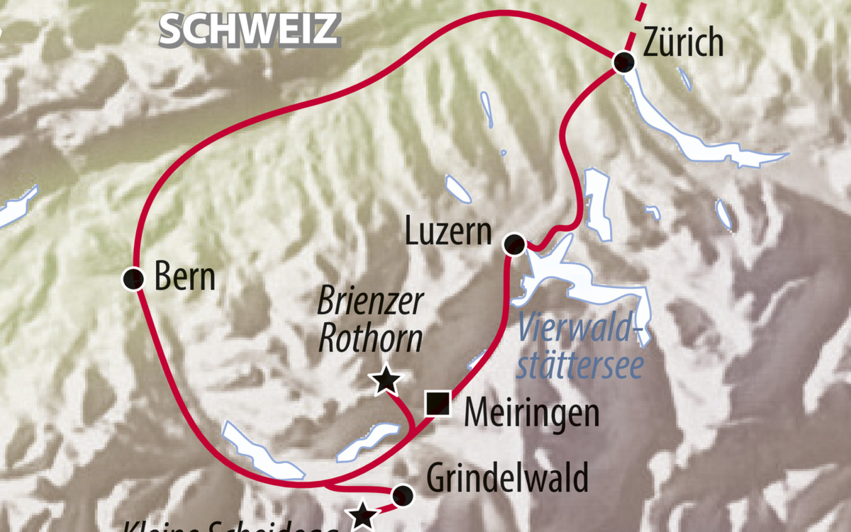 Lust auf Berge und Seen? Die Region zwischen Interlaken und dem Vierwaldstättersee hat alles zu bieten. Im Herzen der Schweiz erwartet Sie die ideale Kulisse für einen traumhaften Urlaub. Unvergleichliche Bergpanoramen, sehenswerte Städte wie Zürich und Luzern, aber auch die Ausflugsschiffe auf den glitzernden Schweizer Seen garantieren ein unvergessliches Reiseerlebnis.