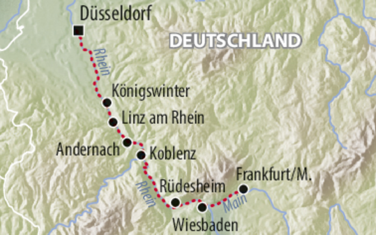 Königswinter – Andernach – Rüdesheim – Frankfurt am Main – Wiesbaden – Koblenz