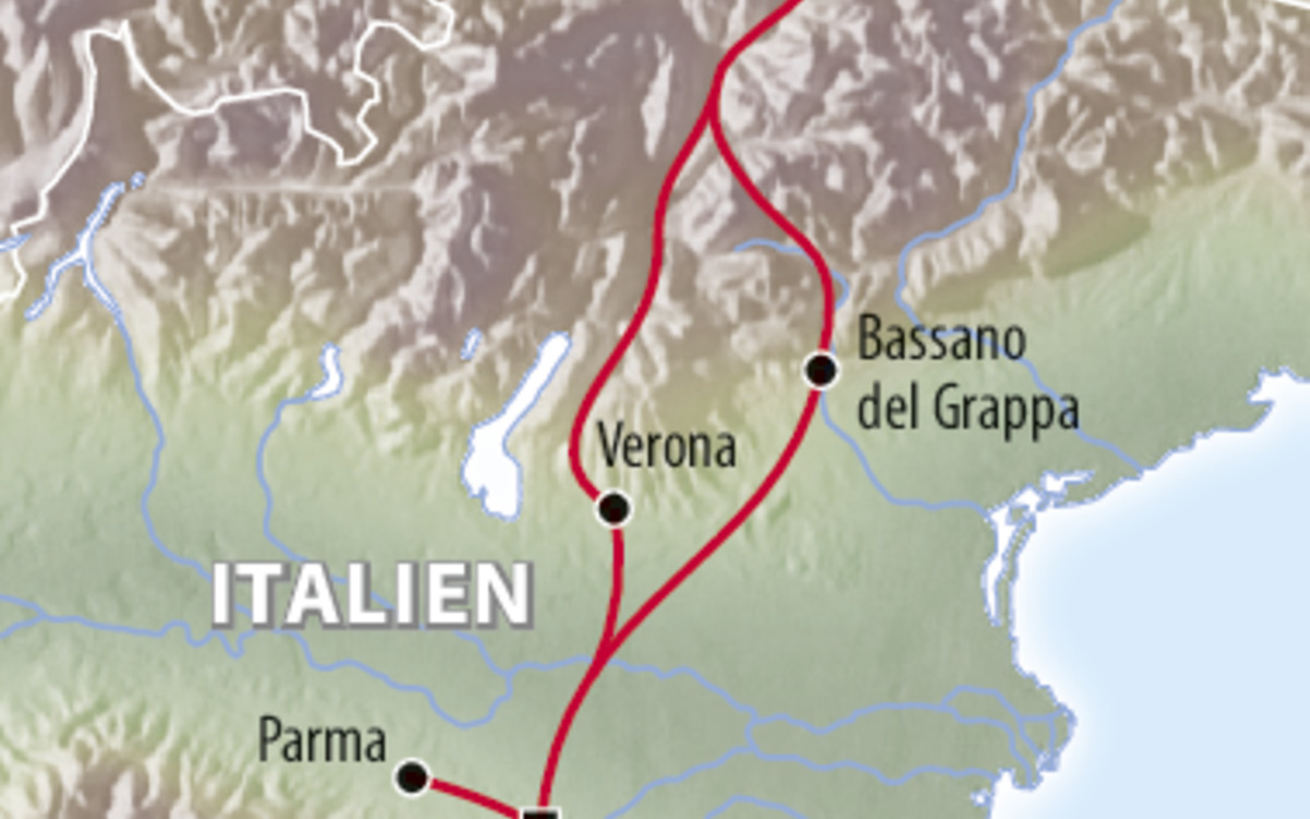 Auf der Fahrt in Richtung Süden lernen Sie das bezaubernde Städtchen Bassano del Grappa kennen, wo Sie das gleichnamige edle Tröpfchen probieren können. Anschließend geht es nach Correggio in Ihr •••• Hotel President, wo Sie die nächsten vier Nächte verbringen. (F, A)
