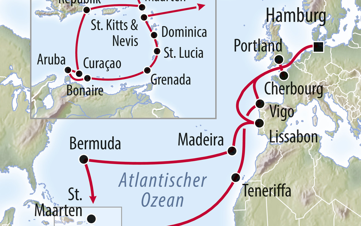 Die Karibik – ein Paradies, in dem das Blau des Himmels nahtlos mit dem Azurblau des Meeres verschmilzt, wo der Duft von Salz und tropischen Blumen die Luft erfüllt und der Rhythmus der Wellen den Puls des Lebens bestimmt. Jede Destination erzählt ihre eigene Geschichte: koloniale Altstädte, sattgrüne Regenwälder und exotische Märkte. Folgen Sie der Einladung, das Leben in vollen Zügen zu genießen, den Moment zu leben und neue, exotische Welten zu entdecken.