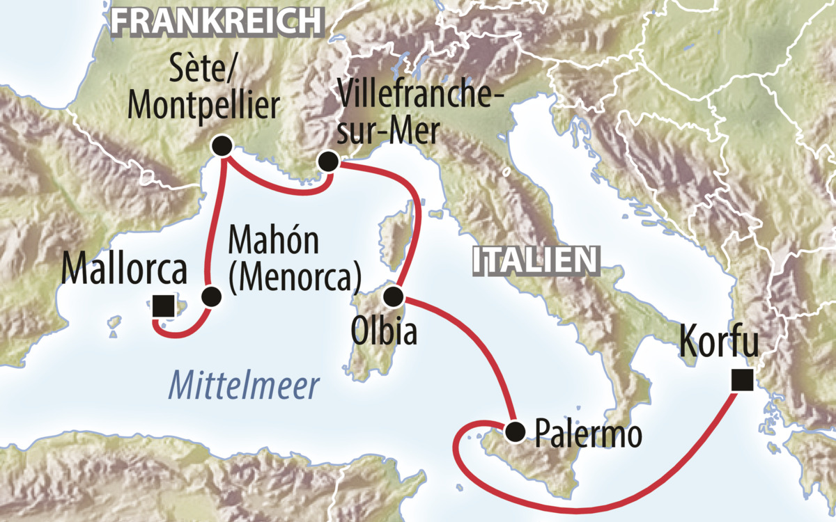 Gehen Sie mit AIDAblu auf eine Zeitreise durch Kulturen, Landschaften und Lebensfreude. Sizilien ist nicht nur die größte Insel im Mittelmeer, sondern auch eine der Vielfältigsten. Majestätisch thront hier der Vulkan Ätna und lädt zu spannenden Entdeckungen ein. Die Felseninsel Malta empfängt Sie mit einer beeindruckenden Architektur und traumhaften Buchten. In Weiß und Blau strahlen die griechischen Inseln mit den schönsten Postkartenmotiven um die Wette.