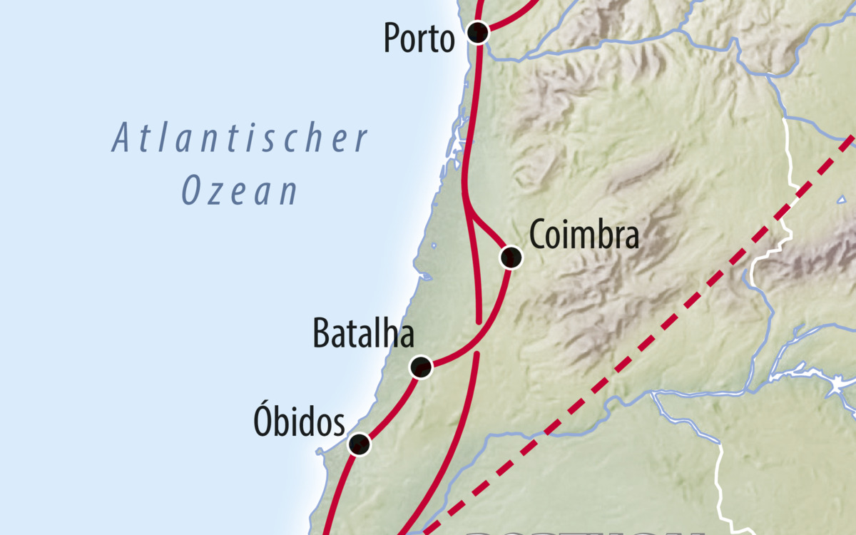 Portugals traumhafte Landschaften bezaubern von Lissabon bis Porto mit reifenden Weinreben, malerischen Dörfern, lebendigen Städten und wildromantischen Flusslandschaften. Dazu gehören das Tal des Douro, Heimat des berühmten Portweins, und zahlreiche Kulturschätze, die sich wie eine Perlenschnur vom Norden Portugals bis nach Lissabon aneinanderreihen. Freuen Sie sich auf ein unvergessliches Abenteuer im Herzen Portugals!