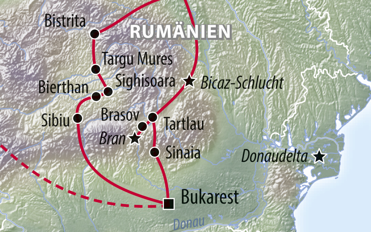 Wer kennt Sie nicht, die berühmte Geschichte des Grafen Dracula und seiner Burg in Transsilvanien, dem Land jenseits der Wälder? Doch Rumänien hat neben der berühmten Burg Bran viel mehr zu bieten: Kostbar bemalte Moldau-Klöster, prunkvolle Schlossanlagen und die Landschaftsidylle Siebenbürgens. Tauchen SIe ein in geheimnisvolle Kulturlandschaften und erleben Sie hautnahe Einblicke in das noch facettenreiche Land.
